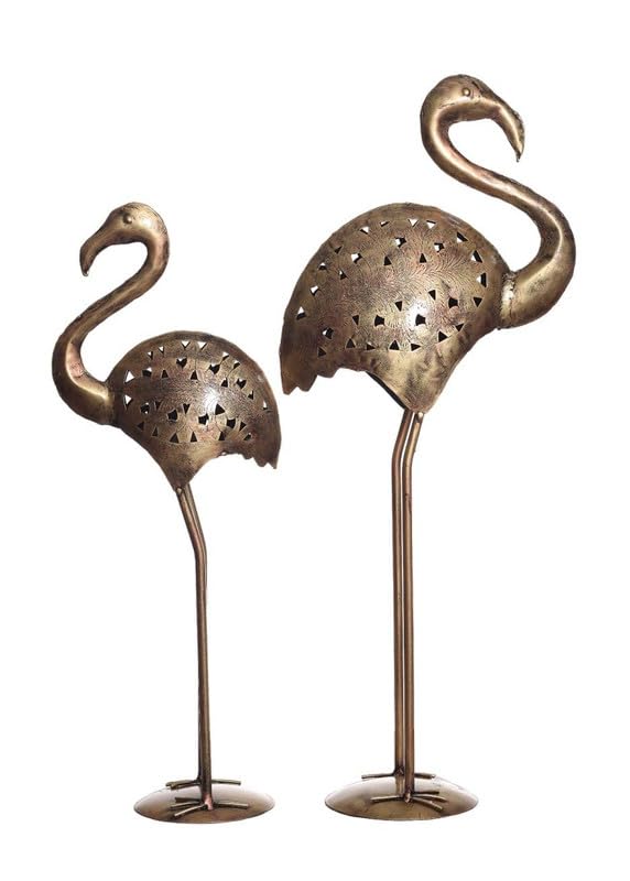 Bring timeless charm to your space with this handcrafted pair of flamingo sculptures made from durable fabricated iron. Finished in an antique golden polish, each piece reflects exquisite Rajasthani artistry, perfect for home, office, or garden decor.