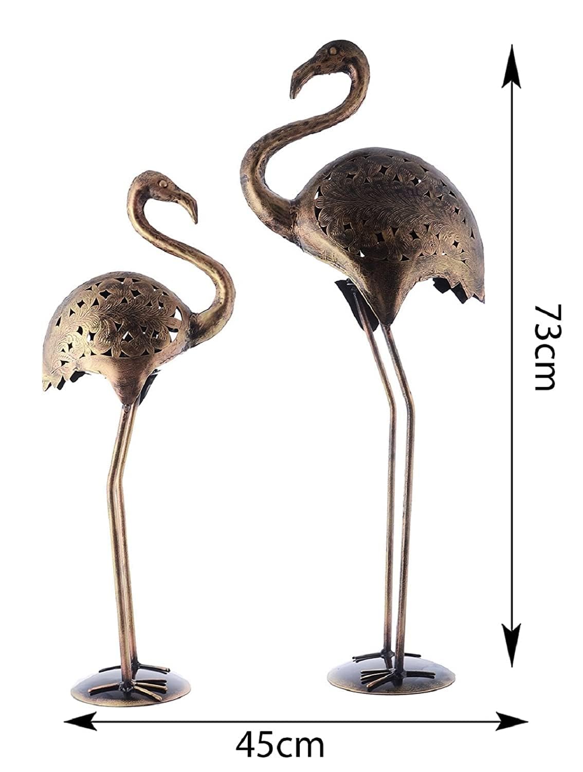 Add a touch of royalty and grace to your décor with this Handcrafted Antique Golden Iron Flamingo Pair. Expertly crafted from premium fabricated iron, these sculptures are coated with anti-rust and long-lasting powder finish to ensure durability.