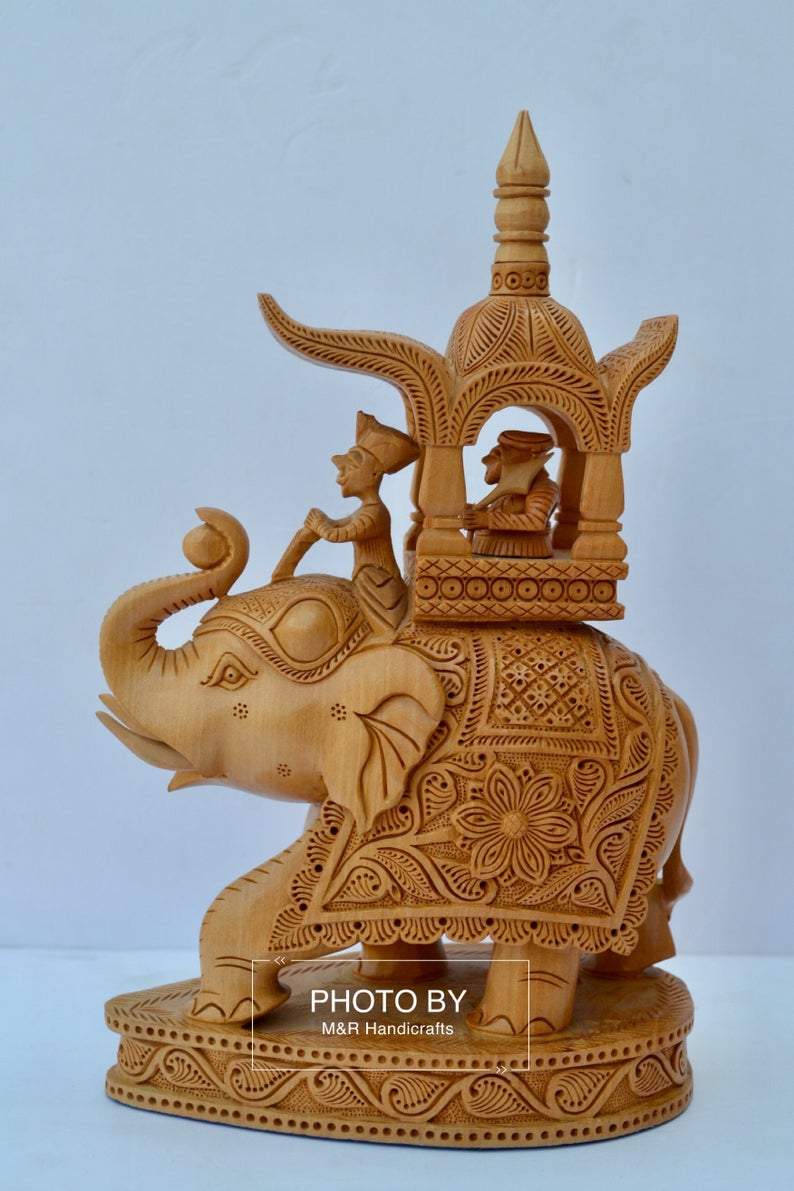Bring home the elegance of Indian craftsmanship with this handcrafted wooden Ambabari elephant. Each detail is carefully carved, showcasing royal figures seated on a beautifully designed elephant, symbolizing heritage, strength, and royalty.