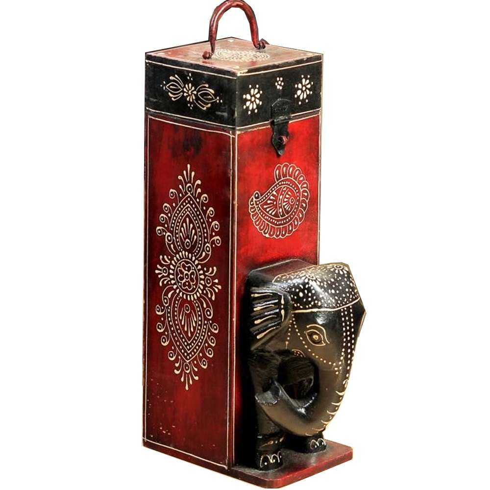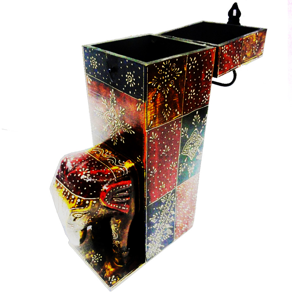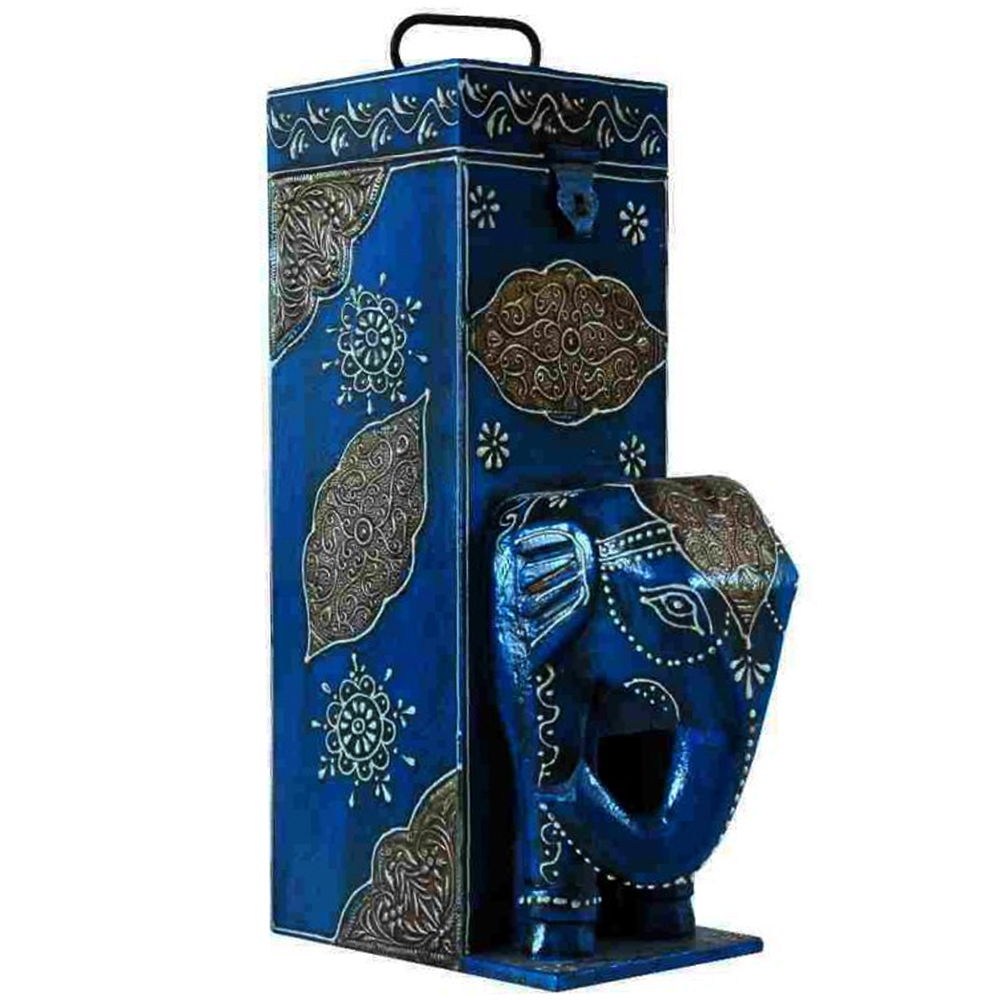 Add a royal touch to your décor with this Handcrafted Wooden Elephant Bottle Holder, a symbol of artistry and grace. Expertly carved from quality wood, the holder features a beautifully detailed elephant figure on the front and traditional Rajasthani hand-painted motifs that highlight the rich heritage of Indian craftsmanship.
